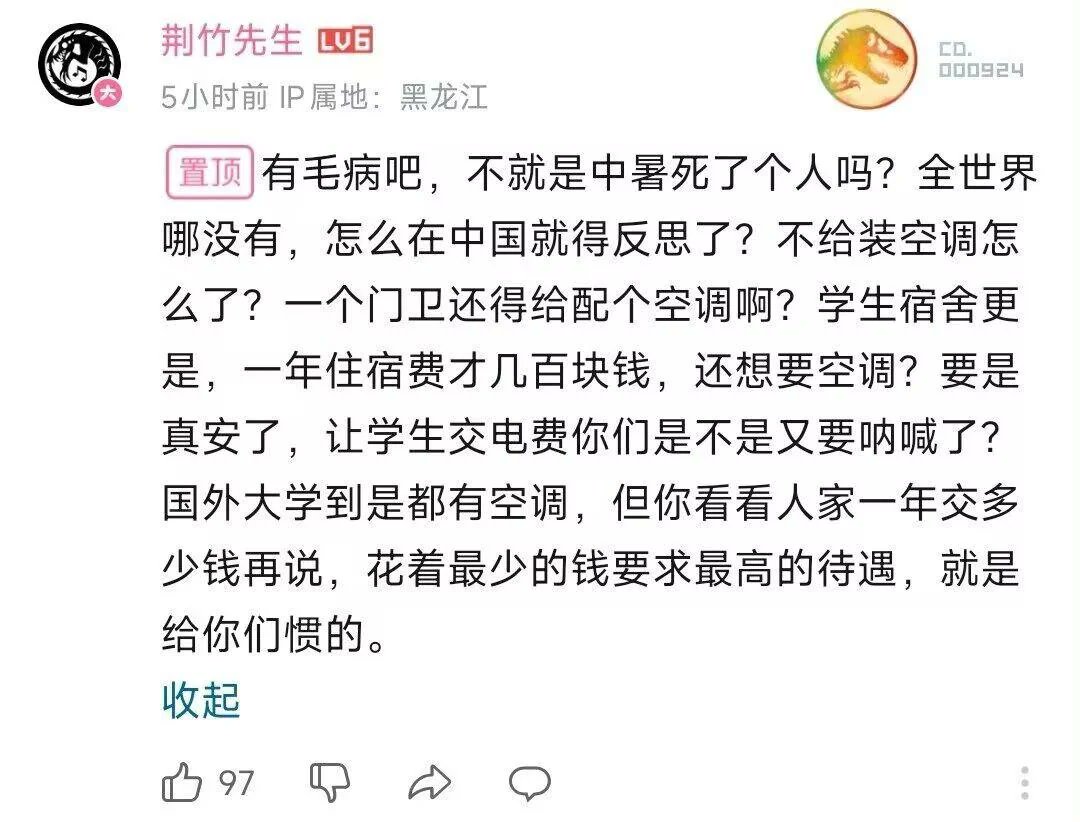 中国网友提问:一年住宿费才几百块钱,还想要空调?