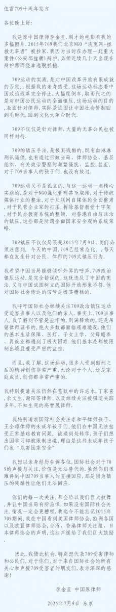 我的709十周年发言(可以自由转载,使用)