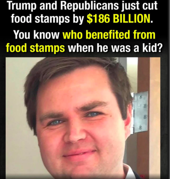 有中国人过拆桥的,也有美国人上车关门的。万斯家境清寒,靠国家免费救济食品成长。而现在他投下关键一票反对免费救济食品,使得300万人失去了免费救济食品。