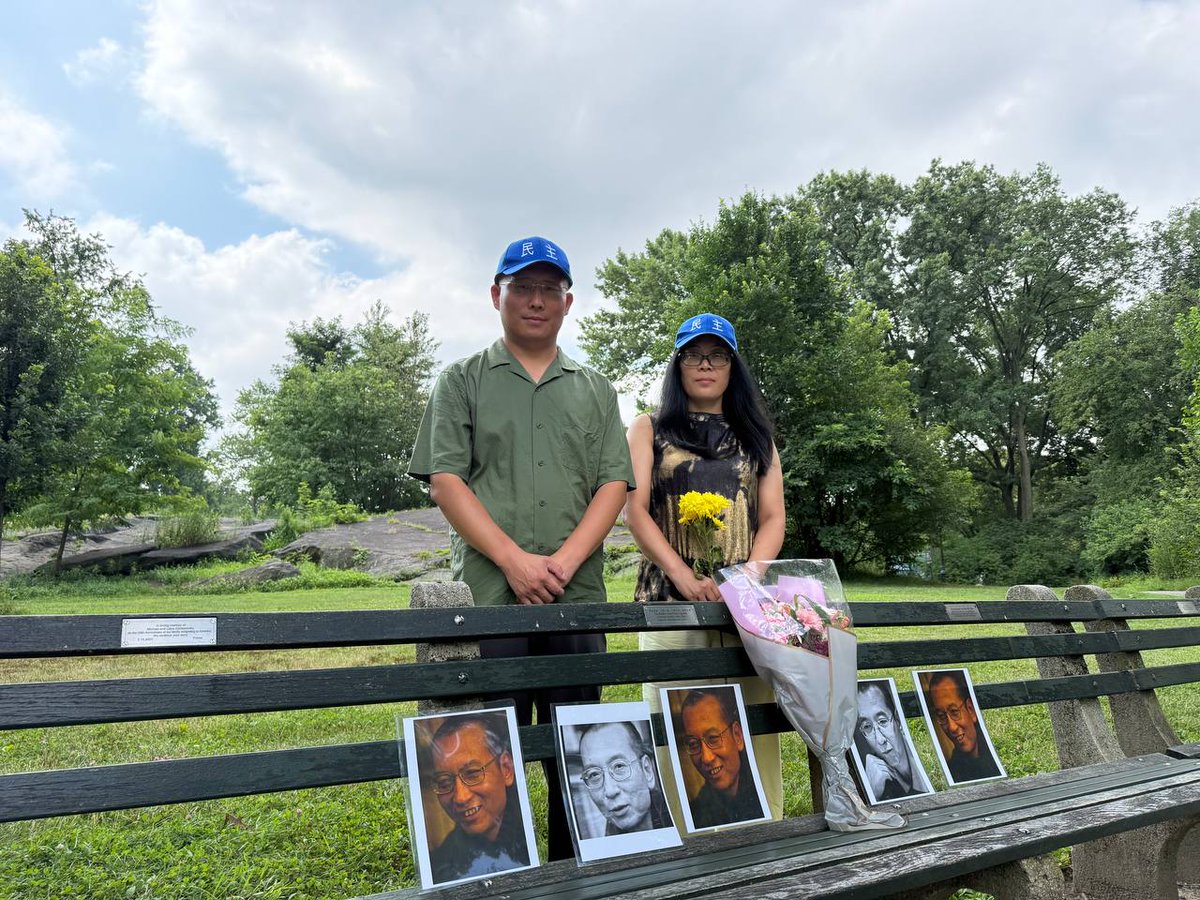 我们不会遗忘他为了我们所做的奉献,更不会遗忘共产党对他所进行的迫害!Today, I went to the bench with Mr. Liu Xiaobo's name in New York's Central Park with my friends. We offered our sincere greetings. Mr. Liu Xiaobo said: Freedom of expression is the foundation of human rights, the basis of human nature, and the mother of truth. Blocking freedom of speech tramples on human rights, suffocates humanity, and suppresses truth.