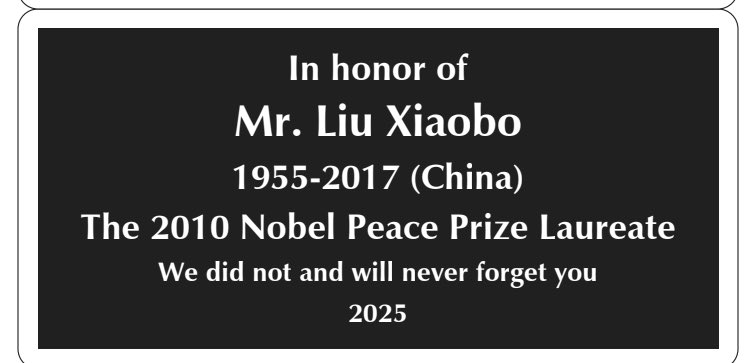 诺贝尔和平奖得主刘晓波去世八周年之前, 爱心人士为刘晓波设立了纪念长椅,在·美国首都华盛顿的国家植物园National Arboretum的Herb Garden,欢迎前往观瞻,向刘晓波先生致敬。
