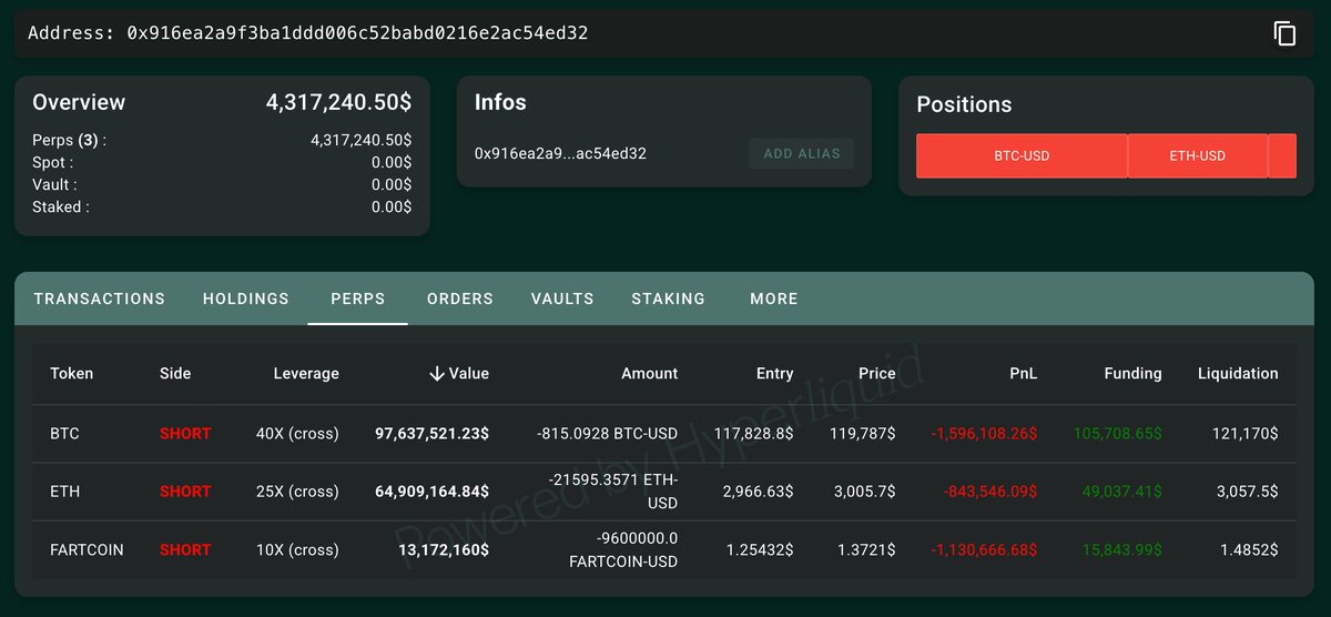 BTC 悄无声息的 12 万美金了,「内幕老哥」的空单正在不断被清算🥶过去半小时累计清算 458 BTC + 12147.39 ETH + 540 万枚 FARTCOIN,共亏损 220.7 万美元;目前剩余仓位仍浮亏 354 万美元钱包地址本文由 #Gate 大门交易所 | 赞助