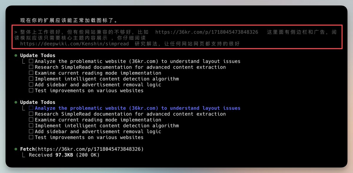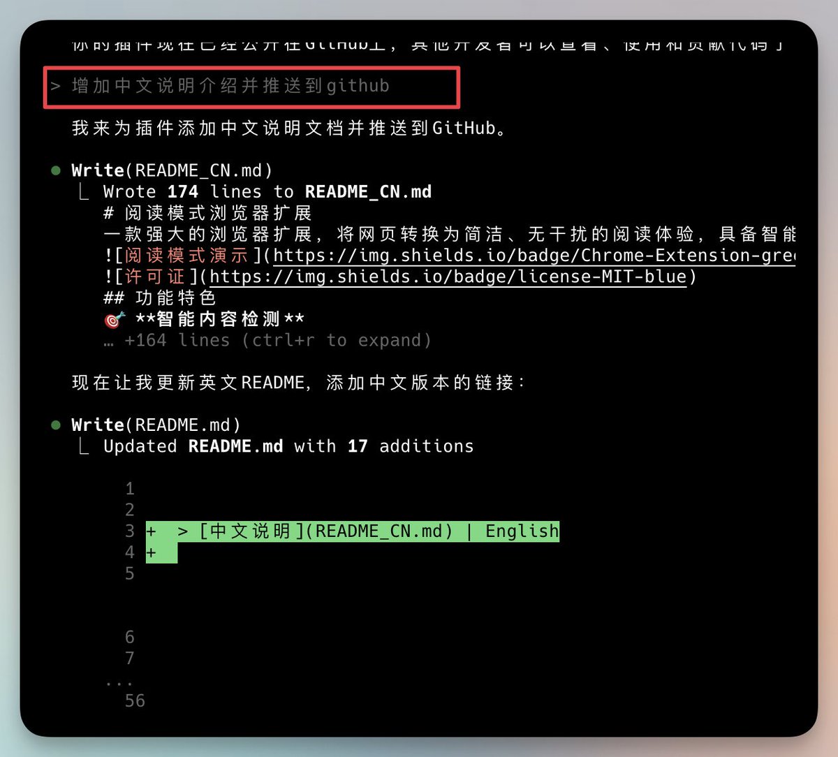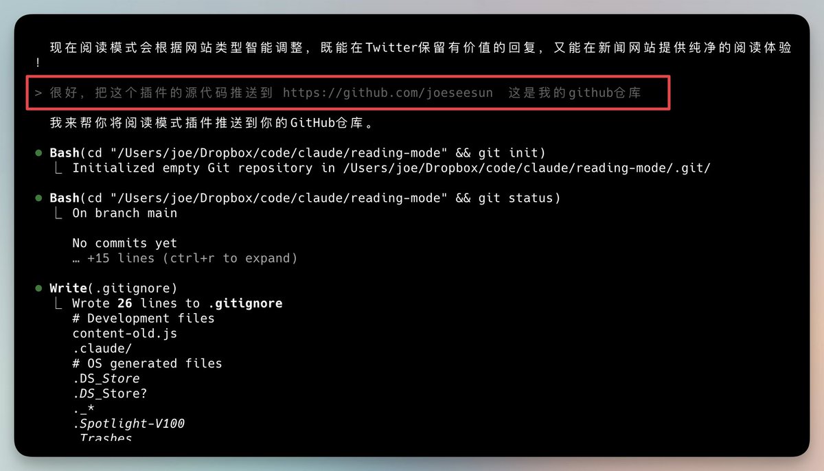 插件开发过程分享:1. 创建一个文件夹,然后输入claude启动CC2. 输入提示词:参考 实现一个chrome插件,当我按快捷键aa 时,把页面变成阅读模式,类似于Safari浏览器的阅读模式。(简悦也有类似功能,但功能太多,配置太复杂了)3.