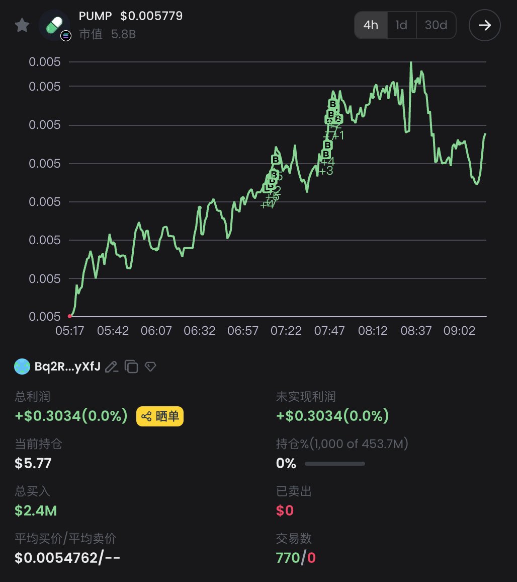 WIF 波段巨鲸一小时前以均价 $0.005476 买入价值 248 万美元的 PUMP,目前浮盈 11.7 万美元该地址还曾在今年六月特朗普晚宴前后抄底 TRUMP 获利 482 万美元;目前 $PUMP 已全部转移至地址 8BD1q...RABXv钱包地址本文由 #Gate 大门交易所 | 赞助