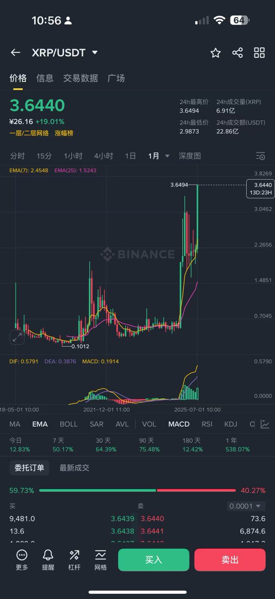 今天早上亚盘起床情绪相当好啊, $XRP 成为继大饼后前50里第二个历史 ATH 的标的,再说牛市没有来是不是有点不合适了?