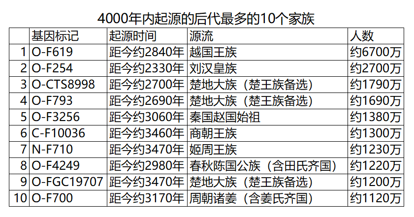 刚刚和人掰扯古代大族有多少后代。拿23魔方统计的基因测试结果做了个表。