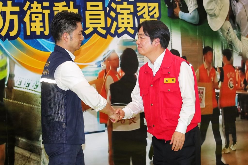 7月17日,蒋万安与赖清德共同出席北部城镇韧性演习,并分别发表致辞。二人在“团结”议题上正面交锋。蒋万安主张“枪口不要对内”,呼吁朝野团结、以台湾人民为优先,避免战争与冲突;赖清德则回应团结不能只停留在口号,必须建立在“反共、反并吞、护主权”的共同信念上,强调应加强国防与社会防卫韧性。