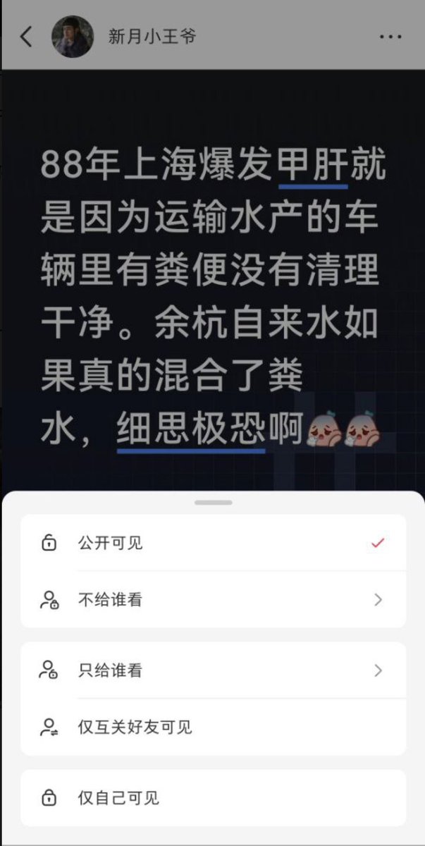 小红书被曝在不告知违规或删帖的情况下,屏蔽其他用户查看杭州粪水相关帖子近日 有网友在小红书发帖警示88年上海甲肝爆发事件就是由于粪水引起,随后别人查看该帖显示已被设置笔记访问权限。但作者再三检查,确认自己确实将帖子设置为公开可见。