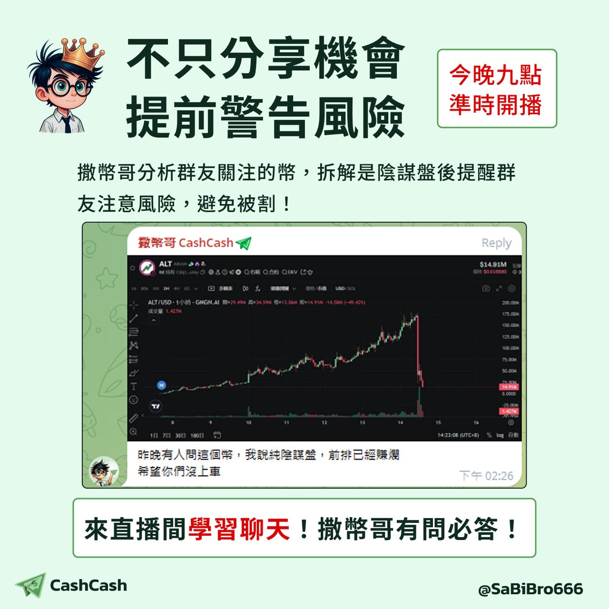 迷因市場中機會多風險更多有時候判斷不出陰謀盤容易損失慘重如果看不出來怎麼辦?🧐別擔心, 貼心為群友解答!分析拆解陰謀盤並提前告知群友風險今晚九點撒幣哥在直播間等你加入!有任何疑問或是想聊的話題都來👈撒幣哥陪各位打狗解悶