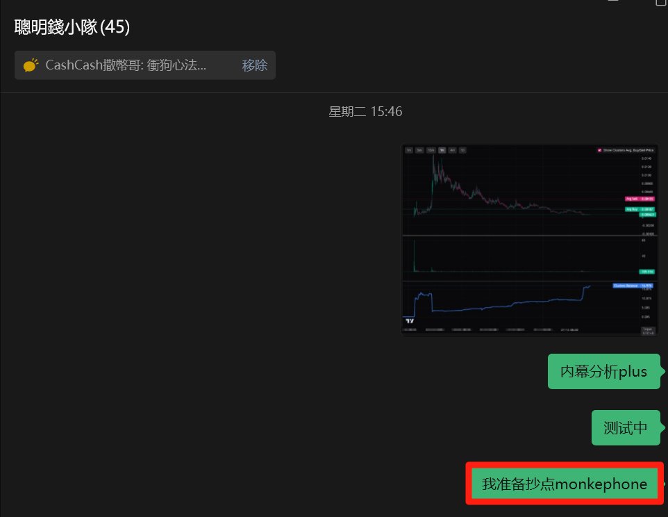 漲了才敢發,嘻嘻 $monkephone雖然吸籌現象非常明顯內幕分析Plus 又一次驗證了