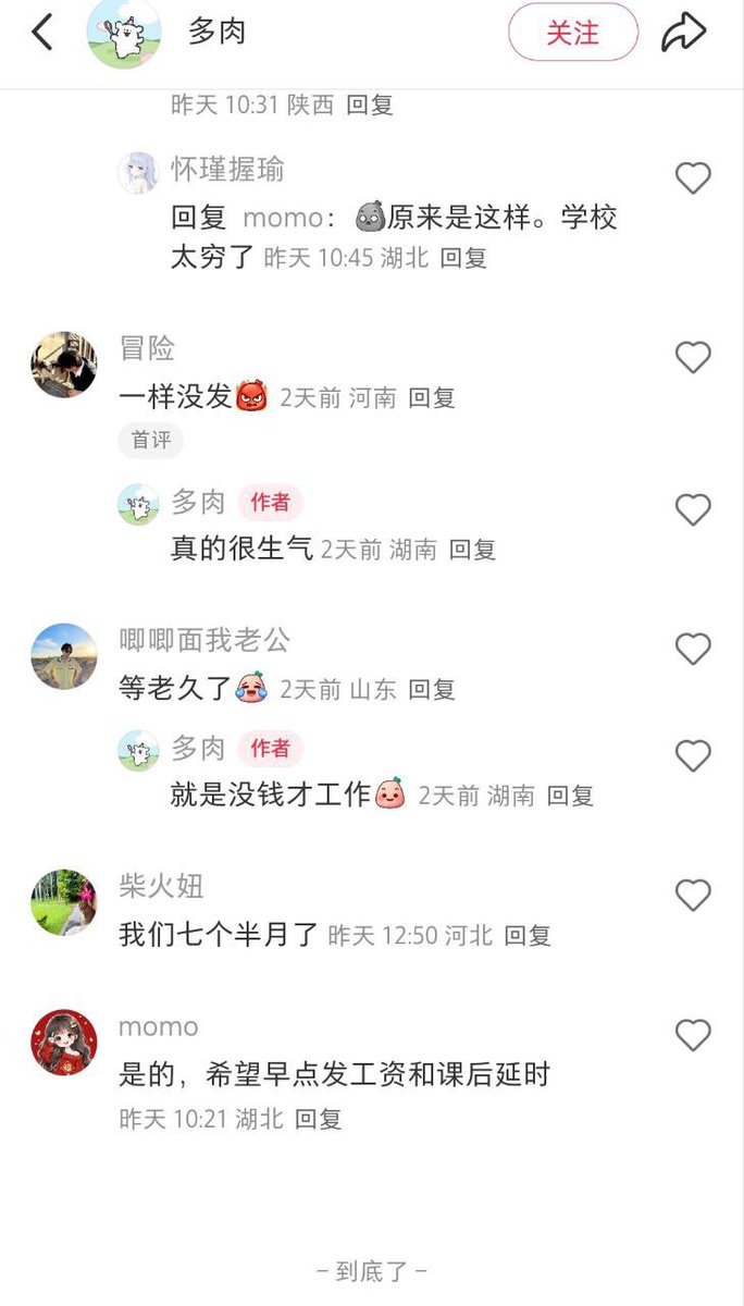 7月20日,湖南张家界,代课老师吐槽:从今年二月份开始,基本工资一分没发,课时费也说没有——之前根本没提过“没有课时费”,是我们催工资、要明细的时候,才突然说“代课的没这待遇”。工资条?从来没见过。天天催,钱是越催越没,今天再问,校长直接装死,不回消息了。网友纷纷回帖:
