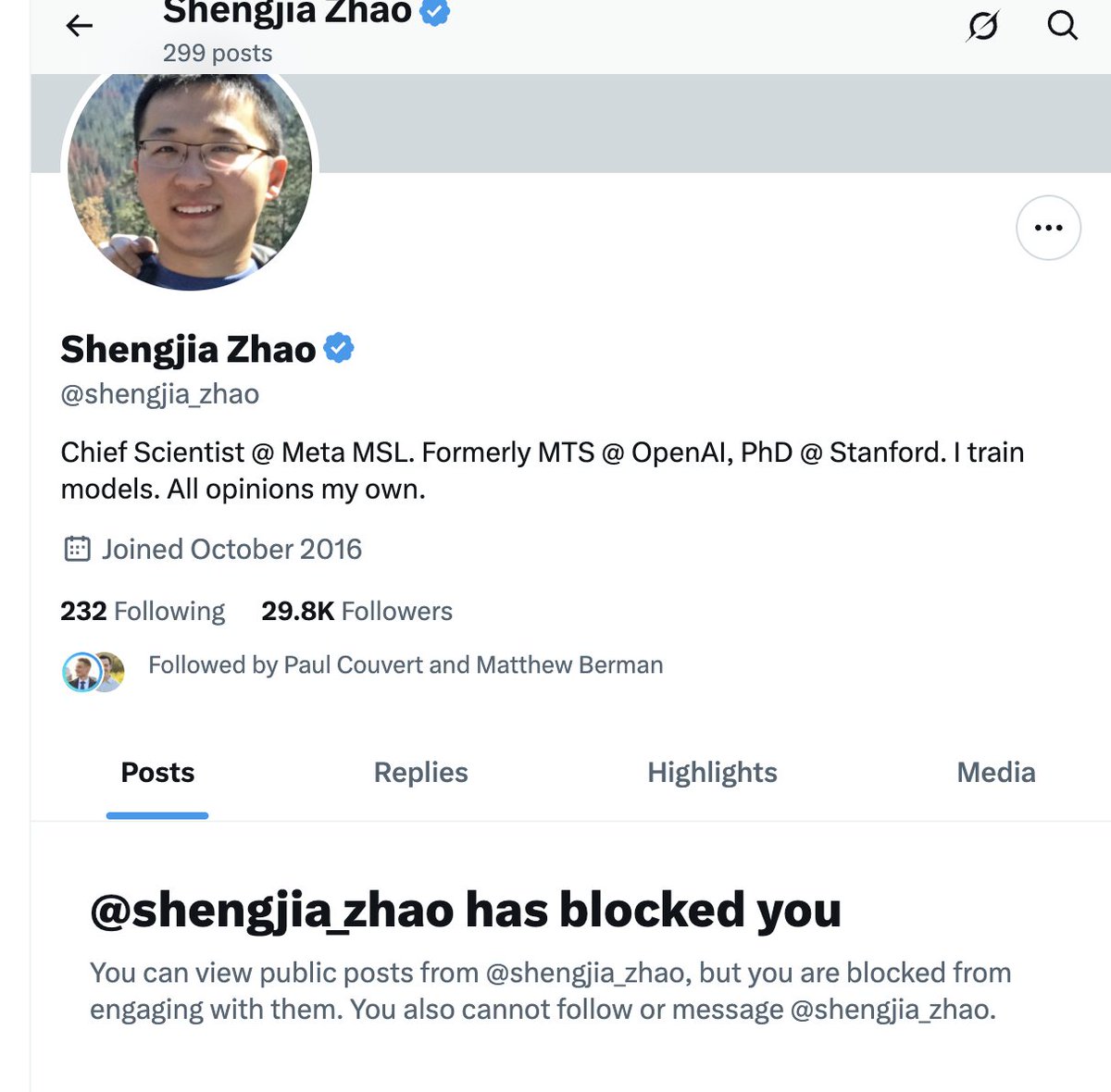 扎克伯格宣布邀请中国人 成为Meta的首席科学家。 但当我想看看他是何方神圣的时候,发现他把我屏蔽了。。。。