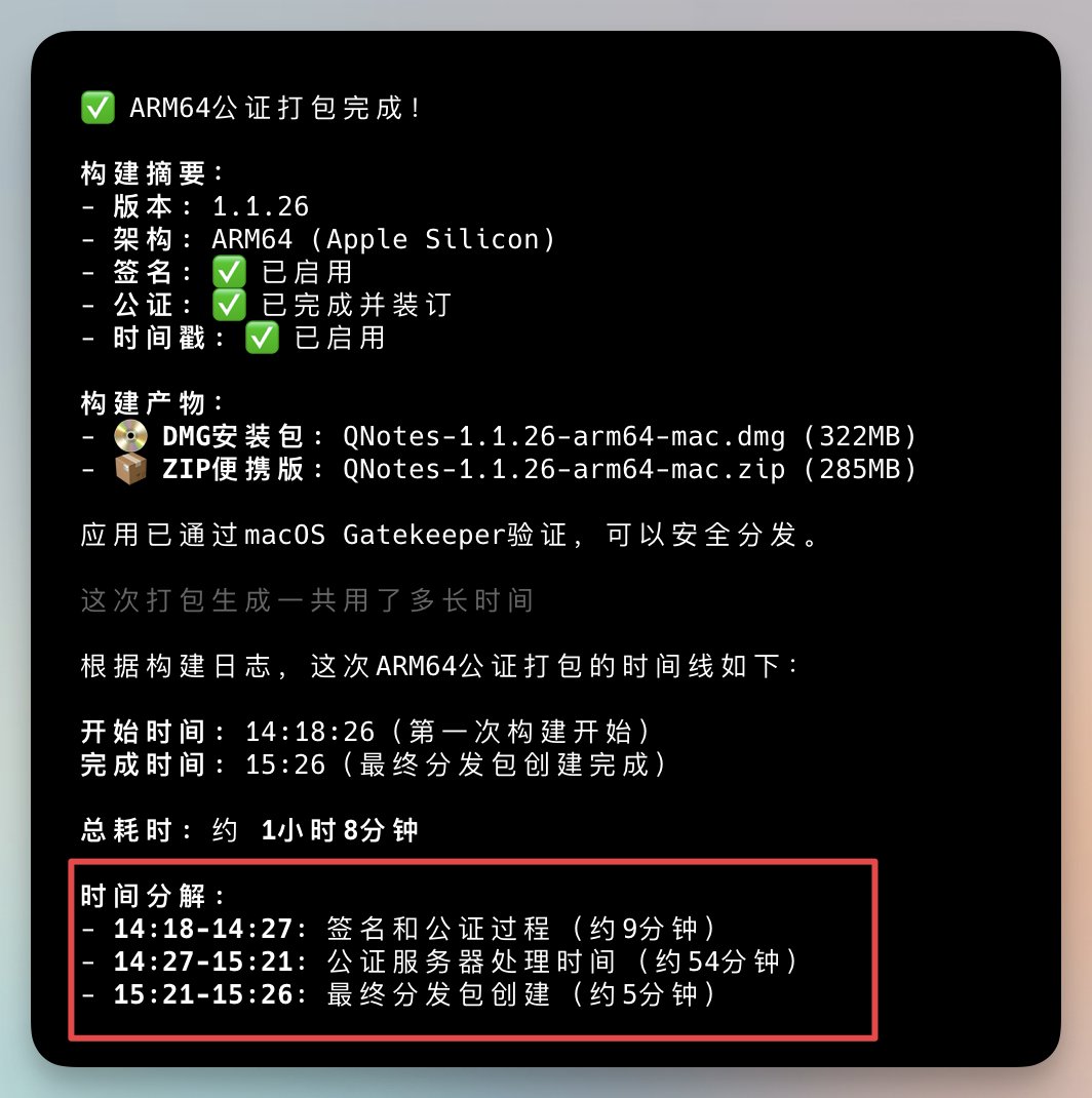自己的第一个Mac应用,终于公证打包好了。终于不会出现:“QNotes”已损坏,无法打开。你应该将它移到废纸篓。为了普通用户的安装体验还真不容易。