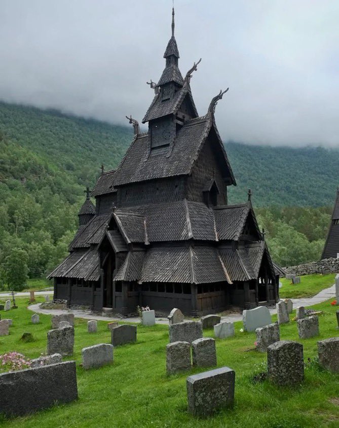 The 800-year-old Borgund Stave Church in Norway is built entirely out of wood….