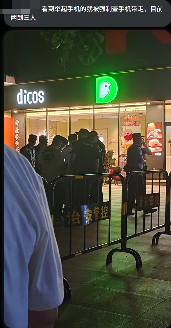 现场网友表示看到举起手机就会被带走,目前有两到三人被抓