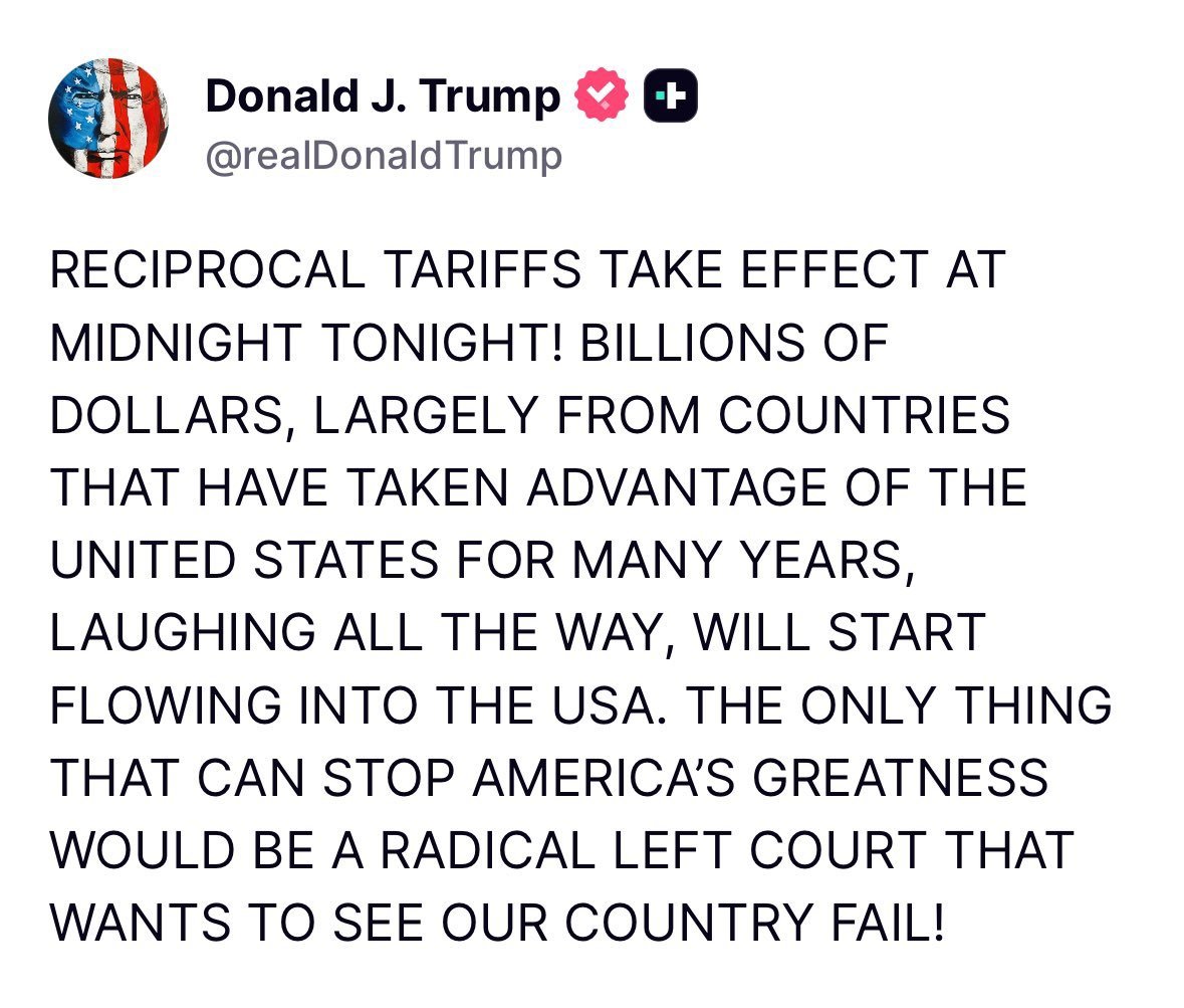 BREAKING: Trump says reciprocal tariffs have taken effect