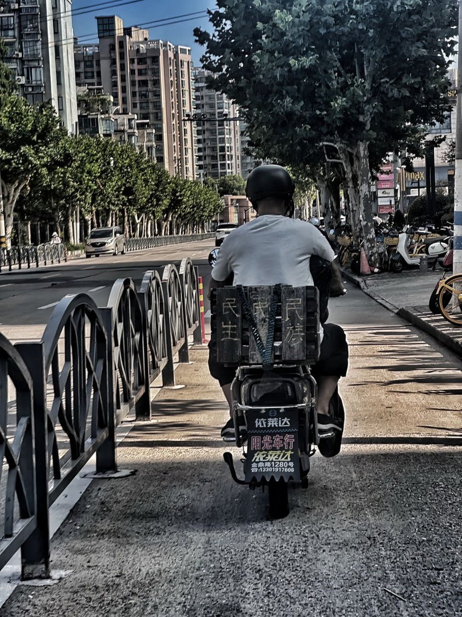 8月6日,上海,网友拍到街上电动车搭载的箱子上写着三民主义的:民权,民族,民生。