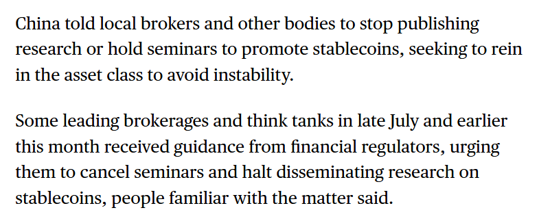 彭博:中国金融监管机构要求经纪商等机构停止发布有关稳定币的研究或举办推广稳定币的研讨会,以规避不稳定的情况。知情人士称,部分主要经纪商和智库在7月下旬及本月早些时候收到指导,敦促它们取消研讨会并停止传播关于稳定币的研究。监管机构还担心稳定币可能被用作在大陆进行欺诈活动的新工具。