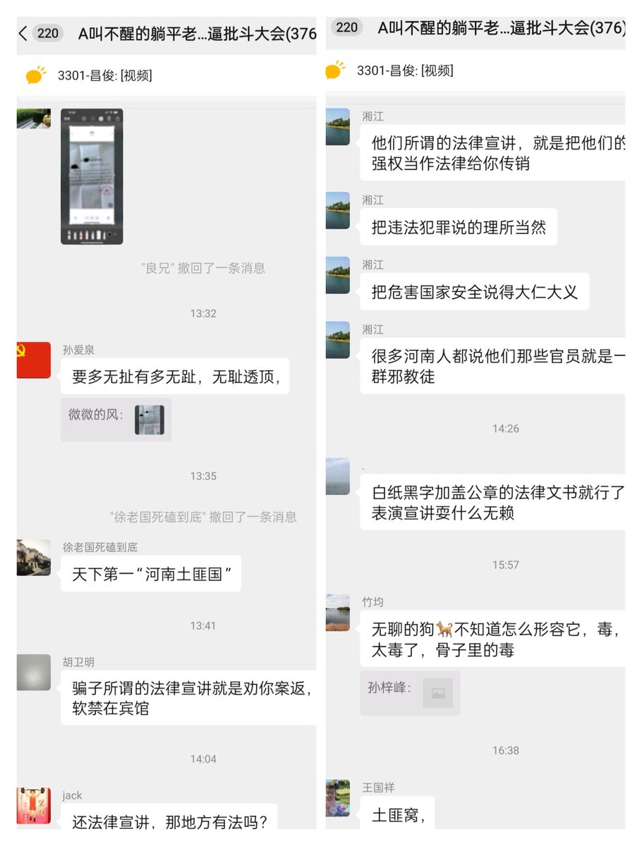 8月7日 郑州市公安局回复今年六月“村镇银行储户面见国家巡视组被多人堵截事件”,辩称当时是河南省各部门在火车站地区成立“村镇银行宣讲组”,对来郑州的村镇银行人员进行政策和法律宣讲,不存在截访。 储户称:所谓宣讲,实际就是把面见中央巡视组的储户从火车站强行掳走,非法囚禁在宾馆里。 恐吓并蛊惑储户必须自己承认自己有罪,若储户不从,当天就采取暴力手段,把储户强制遣返回居住地,千方百计阻挠储户向中央巡视组揭露真相。