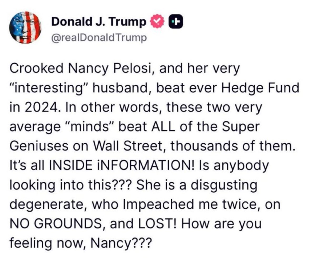 重磅:川普指责南希-佩洛西进行股票内幕交易