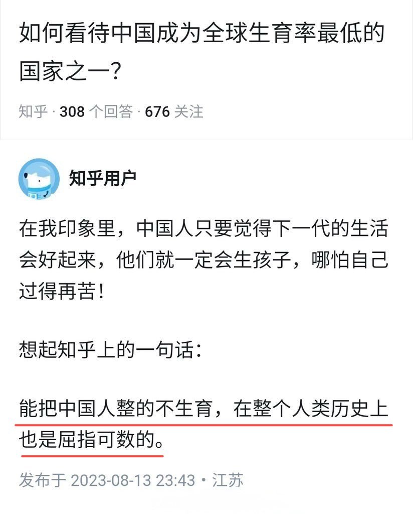 能把中国人整的不生育,在整个人类历史上也是屈指可数的。