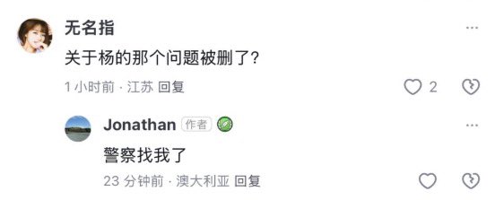 爆料杨兰兰身份的澳大利亚华人Jonathan 被中共警察跨境威胁,删贴了