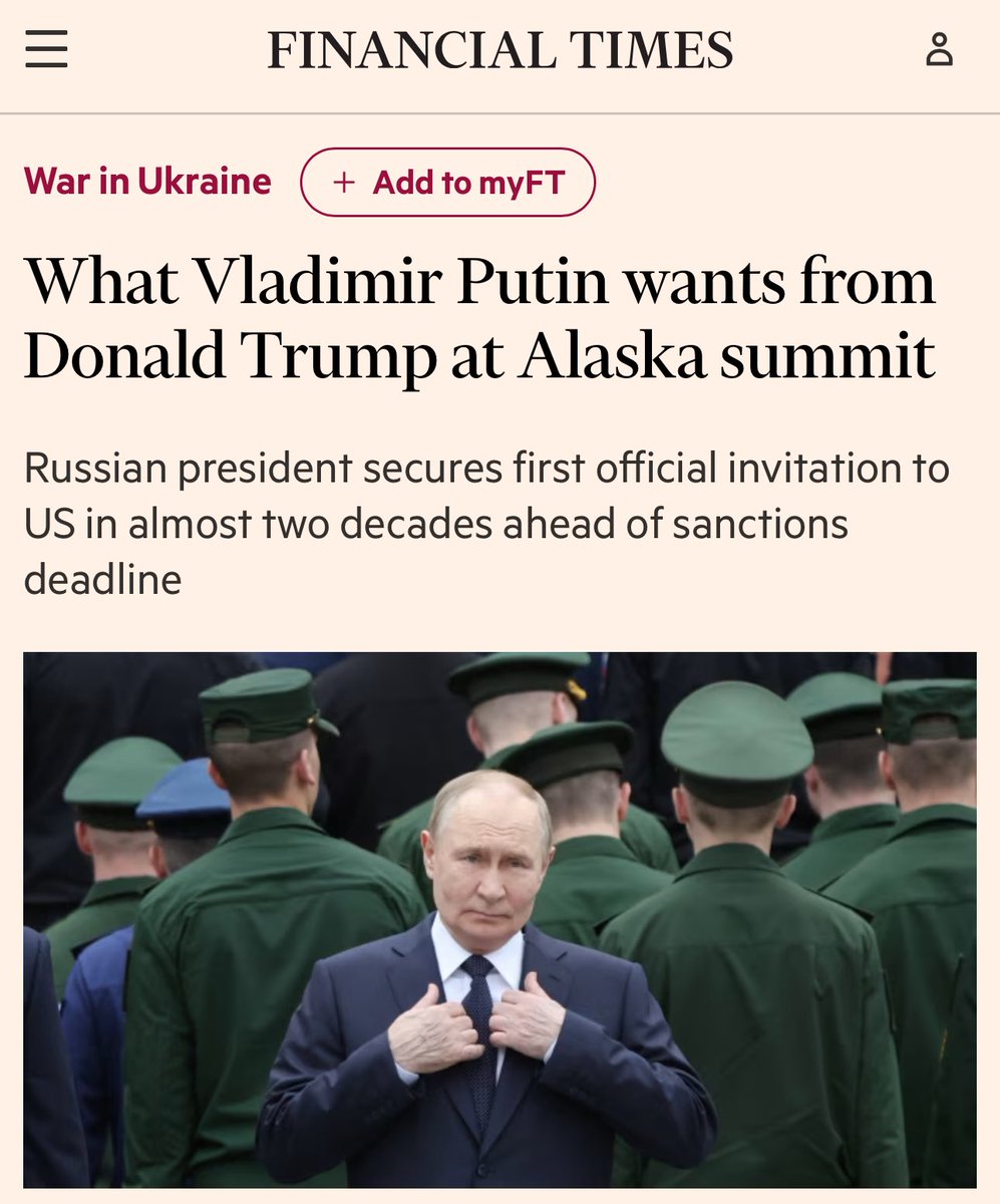 金融時報透露美俄「領土互換」方案:1)烏克蘭將所控制的1/3 頓涅次克領土交給俄羅斯。2)俄羅斯承認南部赫爾松和扎波羅熱主權歸烏克蘭,但俄羅斯必須擁有通往克里米亞的通道。