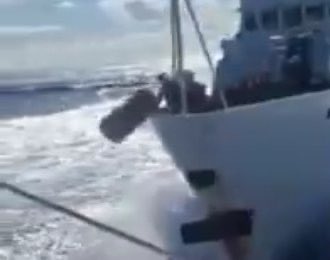 撞击的前一刻,056的船首似乎有两名舰员试图使用浮桶防止或减轻撞击💥然而,056排水量1500吨,052d更是有7500吨,前者相当于479台载的理想 i8,后者相当于2396台。在如此庞大的质量面前,两人的努力是既危险又无用的。愿这两名英勇的海警战士一切安好🙏