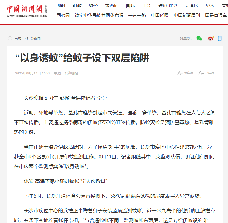 8月14日,广东佛山。居委会通知:号召居民露小腿人工诱蚊,在一个点抓到5只以上的蚊子才能到下一个点,而在湖南长沙,也有"以身诱蚊"的报道。