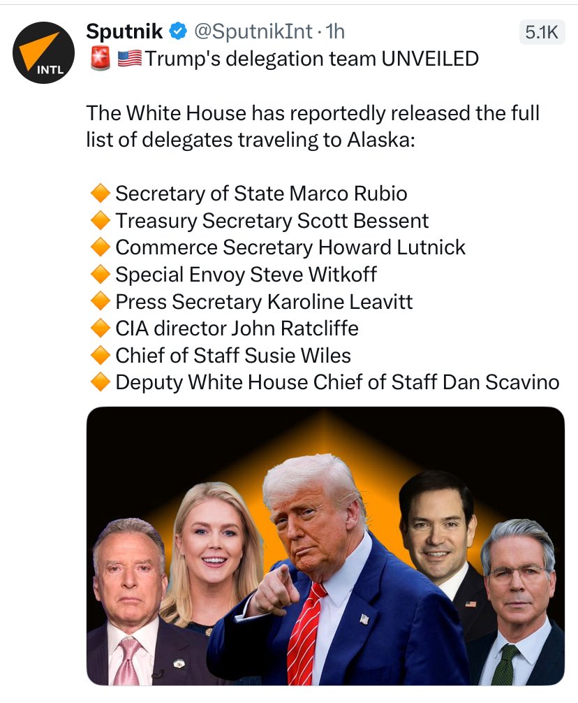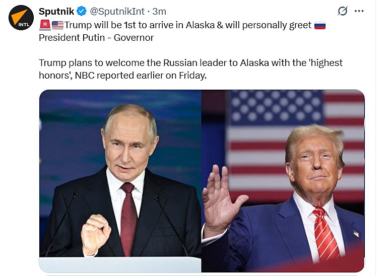 据阿拉斯加州长表示:特朗普将第一个抵达阿拉斯加,并将亲自以“最高礼遇”迎接俄罗斯总统普京!普京是一个独裁者,国际法庭认定的罪犯。他执政的20多年里,先后入侵过车臣、格鲁吉亚、叙利亚、乌克兰,屠杀那里的人民。特朗普和核心国安和经济团队将集体向普京效忠,美苏/俄争霸,美国输的很干脆!