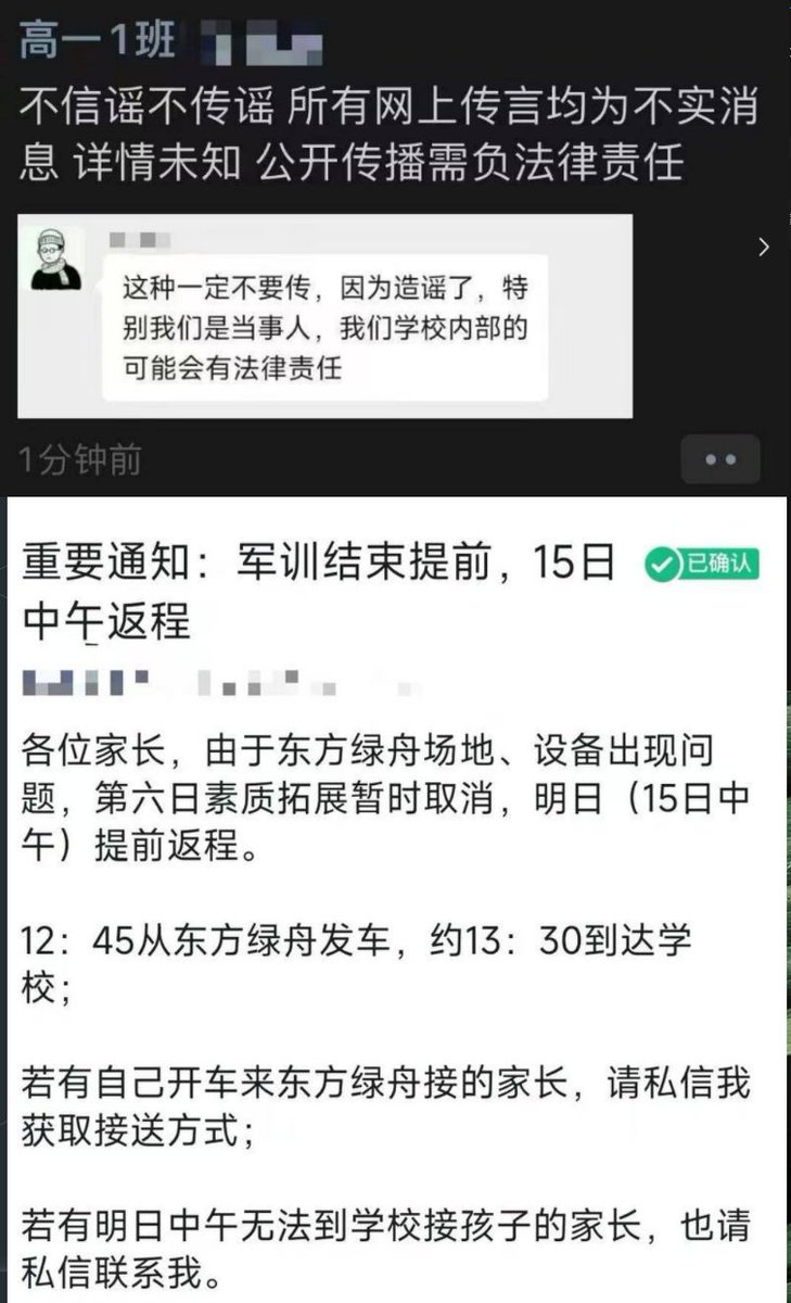 事件后续因一名女生在军训中猝死,上海交大附中宣布军训提前取消,同时校方要求不要公开传播事件。