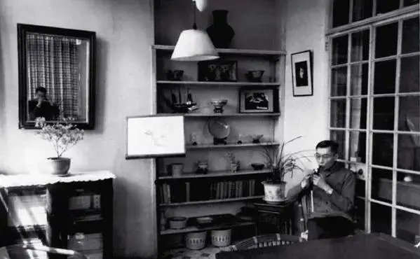 图1:照片拍摄于1964年,傅雷坐在卧室靠近露台铁窗处抽烟斗,后面的铁窗也是他最后自尽之处。