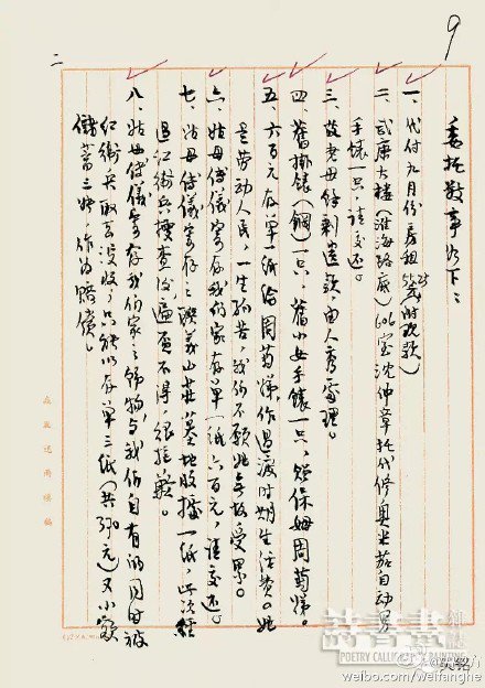 九、三姐朱纯寄存我们家之饰物,亦被一并充公,请代道歉。她寄存衣箱贰只(三楼)暂时被封,瓷器木箱壹只,将来待公家启封后由你代领。尚有家具数件,问周菊娣便知。