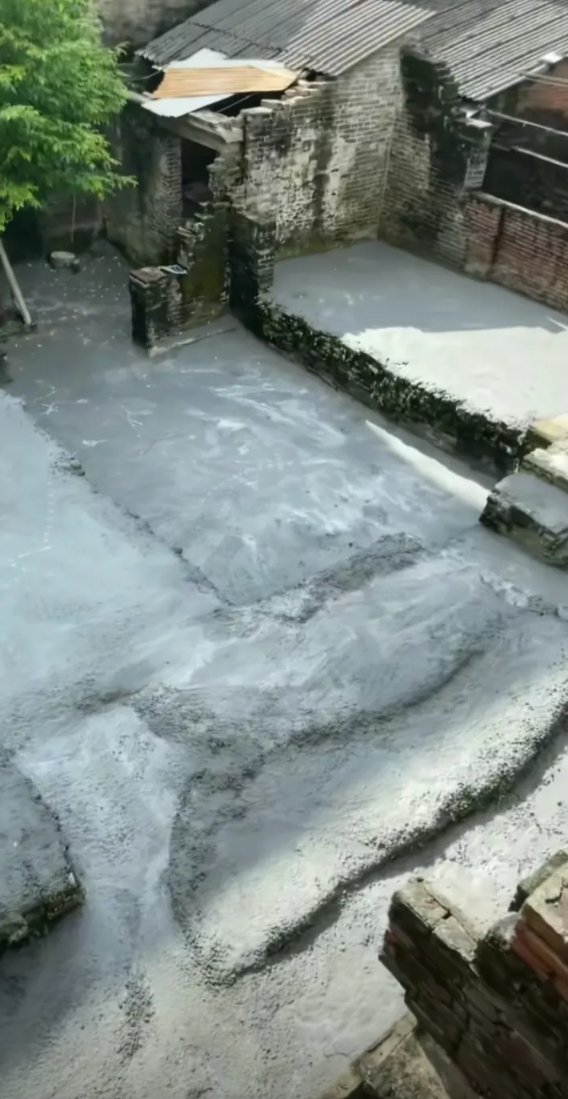 近日,佛山一名网友展现自己家院子被消杀后的情况:原本的菜地全部被水泥封住。