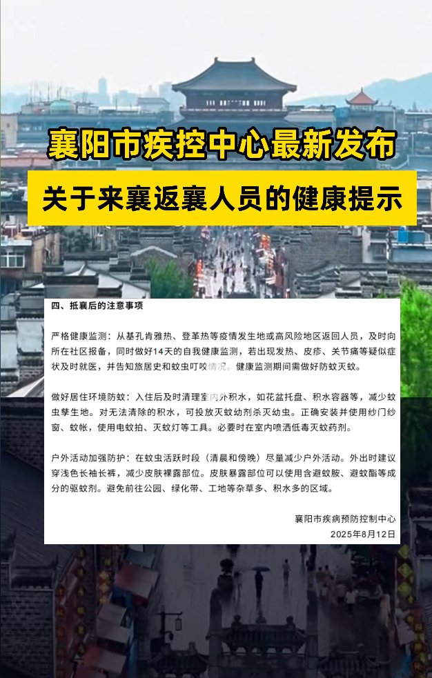 襄阳市疾控中心宣布,从高风险地区返回人员,需及时向社区报备,同时做好14天自我健康检测。