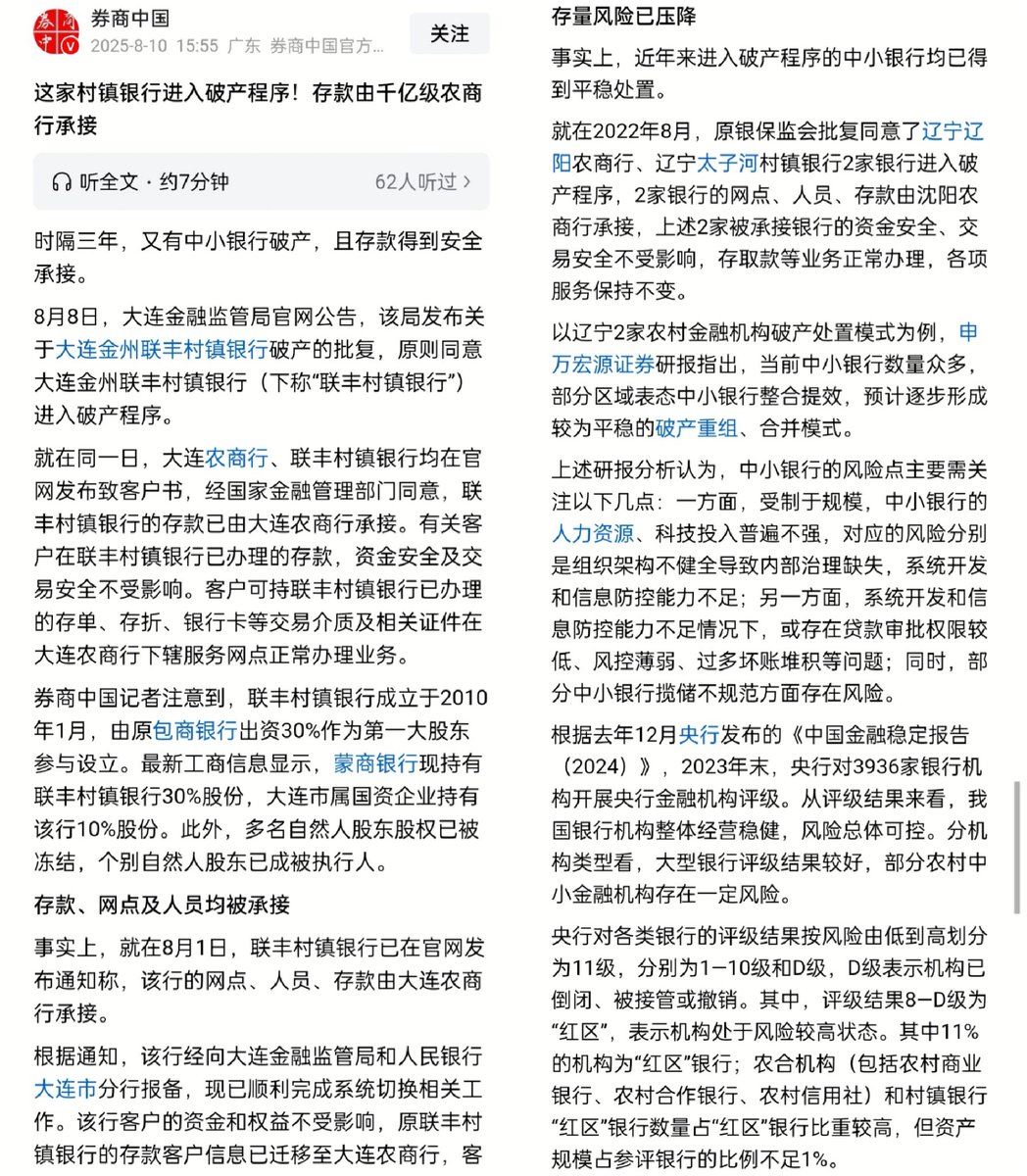 投稿人并不是河南村镇银行唯一的受害者。8月10日,《券商中国》报道国内宣布破产的银行。然而评论区却被河南村镇银行储户刷屏喊冤:河南农商银行旗下5家村镇银行银联卡已“只进不出”1300多天,至今无法取款,更没有任何冻结手续。有人讽刺称,河南村镇银行“连破产的勇气都没有”。