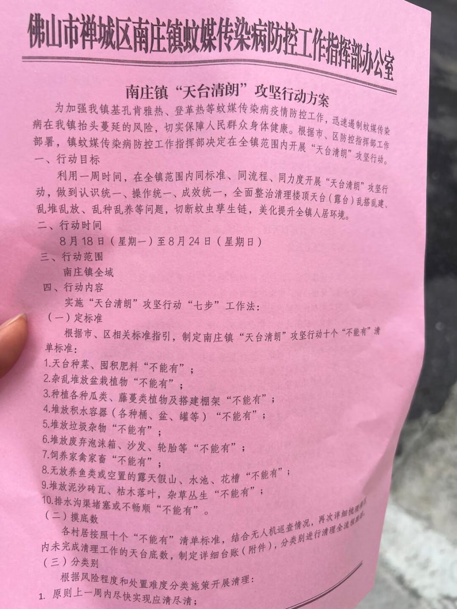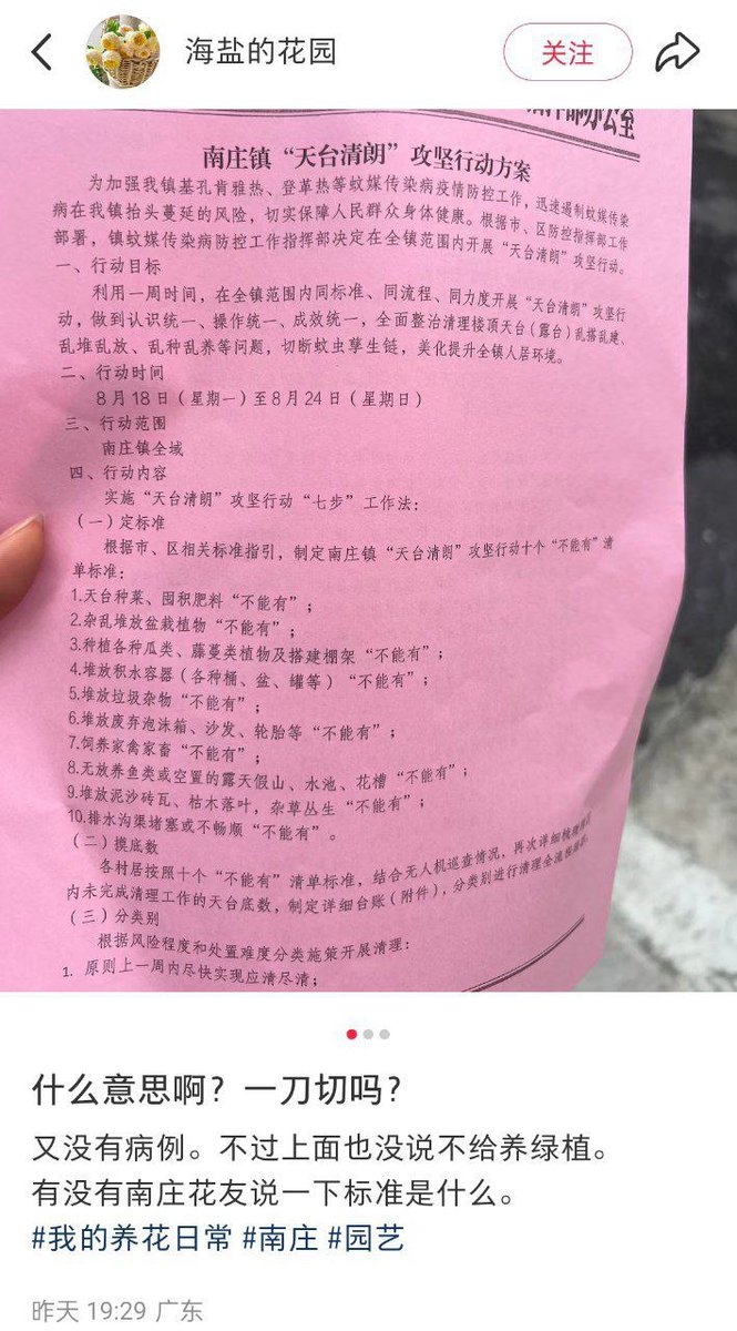 8月18日,广东,佛山,南庄镇。网友发帖吐槽政府一刀切不能在天台养花的政策。