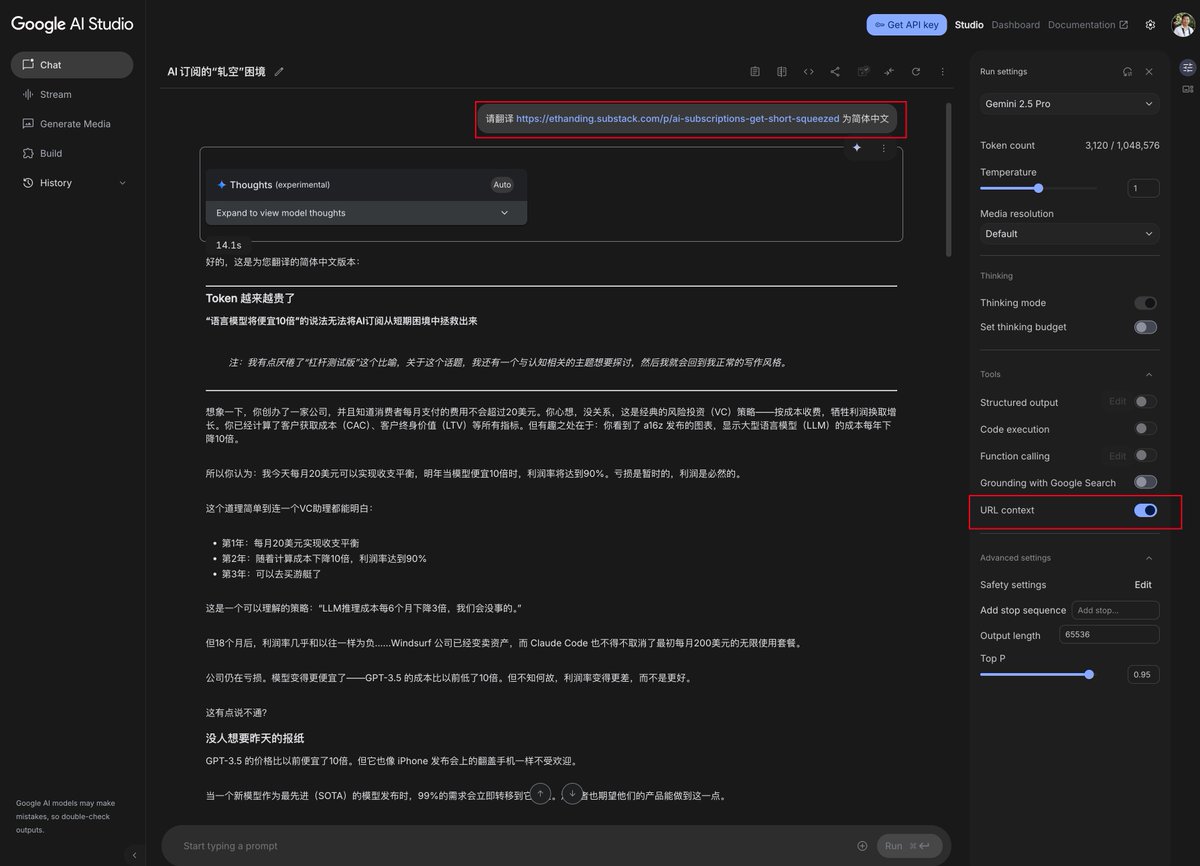 Gemini 的 API 支持 URL 抓取了,你可以提供网页、PDF、图片的 URL 就可以自动抓取内容,然后帮你处理,注意抓取后的内容 token 也计算在输入 tokens 中,但可以省掉第三方抓取 API 的费用,可以说很合算了。当然有付费墙或者禁止抓取的 URL 还是不行。