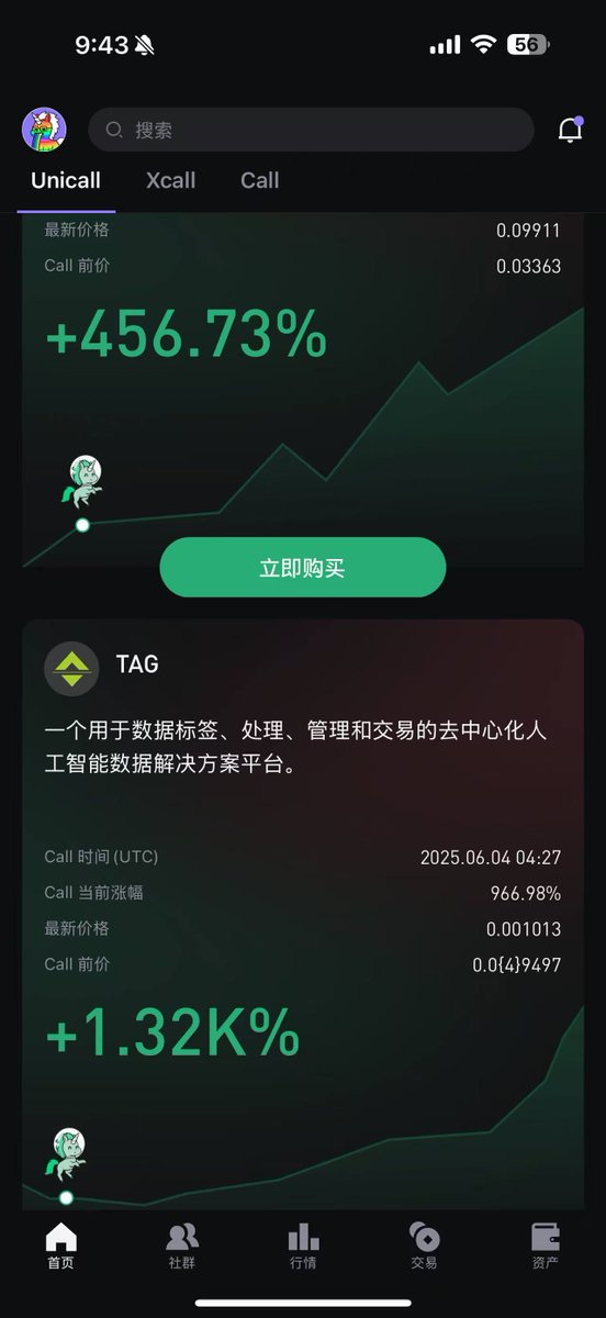 被Unicall的项目都是被 @unicornverse_io 严格筛选并长期投资的优质项目,从当前他们历史记录看,call完到高点至少都有3倍以上的涨幅,其中 $TAG 达到了13倍,哪怕情绪很差的当前,这些标的也最少有1.8倍,作为喊单来说算是很稳健了。