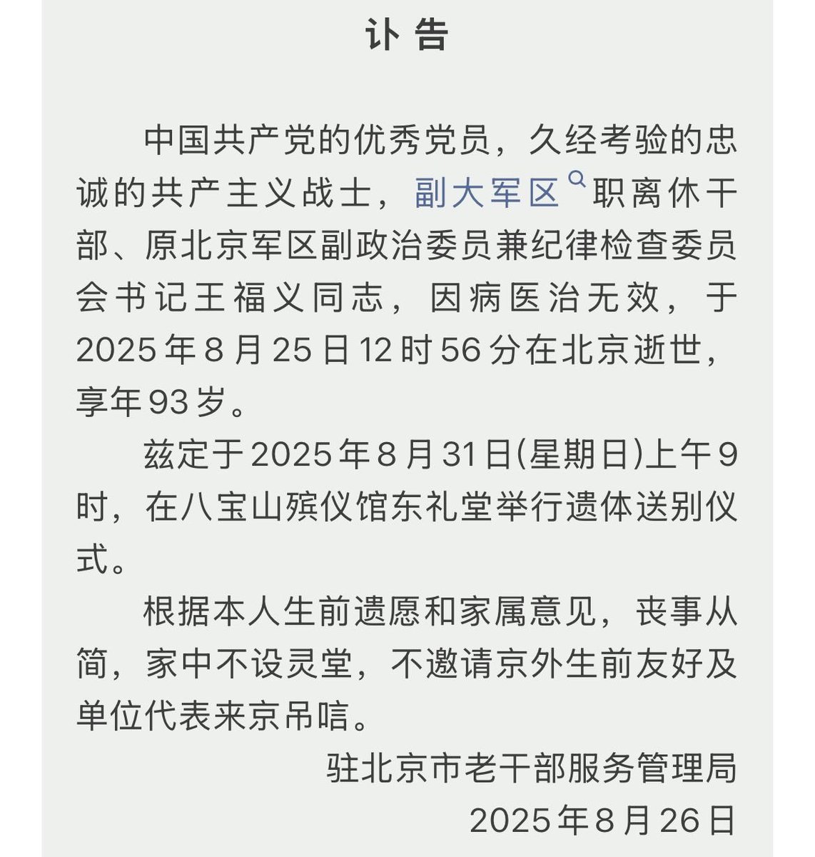 原第38集团军政治委员王福义死了!老天不开眼,王福义是六四屠杀刽子手,双手沾满鲜血,不仅没有受过该有的惩处,反而活到了93岁。