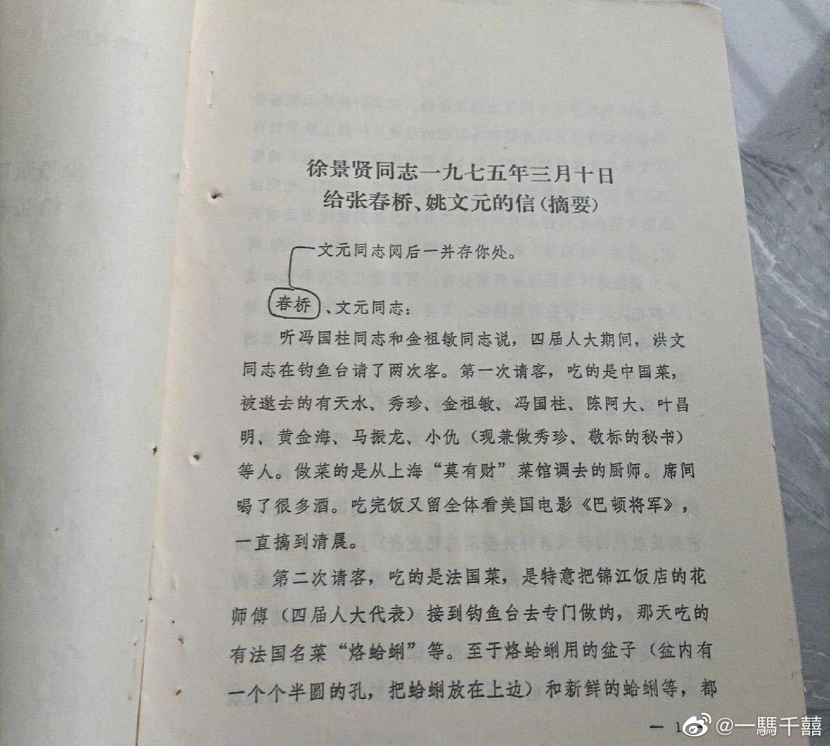 洪文同志的这种追求享受,讲究排场的资产阶级生活作风,在十大以前即有滋长,在十大以后又进一步发展了。仅去年一年,黄涛去京开会三次,洪文同志就至少请了三次客,而且每次都有内部影片招待:第一次饭后看英国片《女间谍》,第二次请黄涛和敬标(当时刚从日本回来)一起吃饭,饭后看美国彩色片《十诫》,第三次饭后看《跳不完的舞》。在钓鱼台住所请他们吃饭还嫌不够,洪文同志又专门到新建的北京饭店设了一席,招待黄涛和敬标。他们吃了回来,还啧啧赞美,说是北京最高水平的菜。但是,这要挥霍掉国家多少钱呀!(张敬标对我说:洪文同志请客有特别费用可以报销。)此外,听说洪文