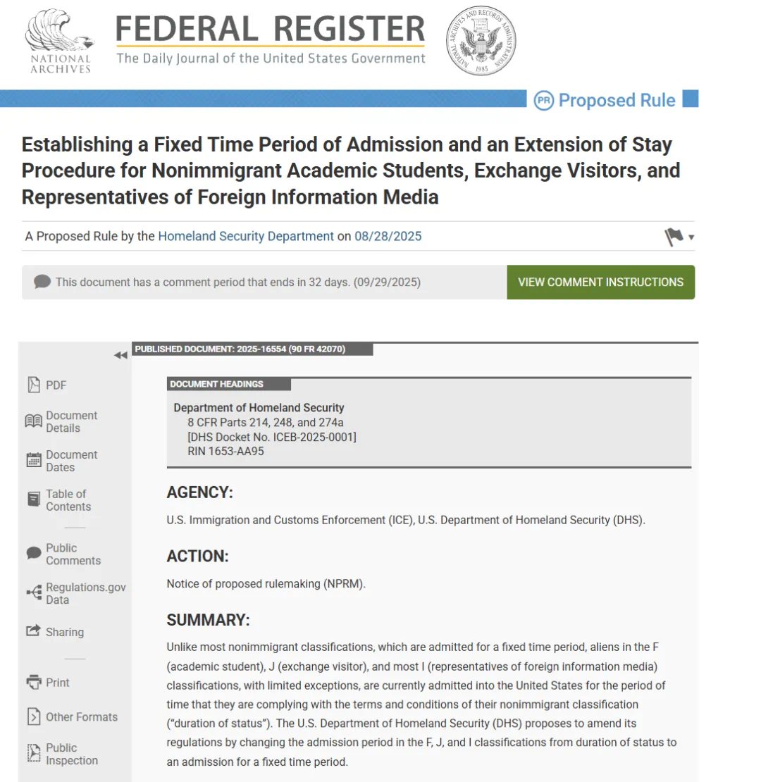 近期美国政府发布留学生新规(正在征集评论)需大家帮助反对。该规定2020年川普政府已提交过,但败选后未执行。现在修改后再提。新规重要改变:1.留学生F1,J1签证停留期改为4年(以前是到学业结束)。2.不得平级转学、换项目。(比如读完硕士你再接一个MBA是不行的,必须转博士)