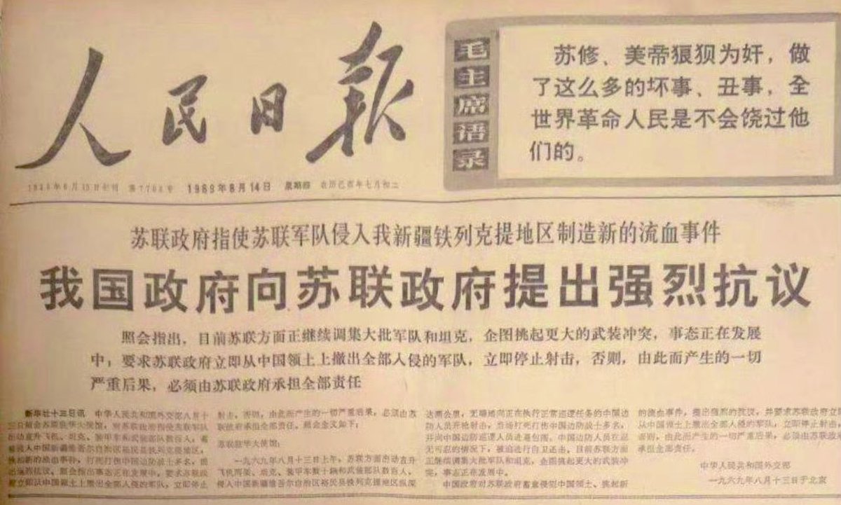 1969年8月13日,苏军300余人,在直升机、坦克、装甲车和火炮的掩护下,突然袭击了新疆边境,经过三个多小时激战,中方主阵地22人全部牺牲。随后,中方支援分队又有6人牺牲,伤40人,中方阵地被迫失守。宴请普京的时候,我帮忙提个醒儿,不能只记日本的仇。
