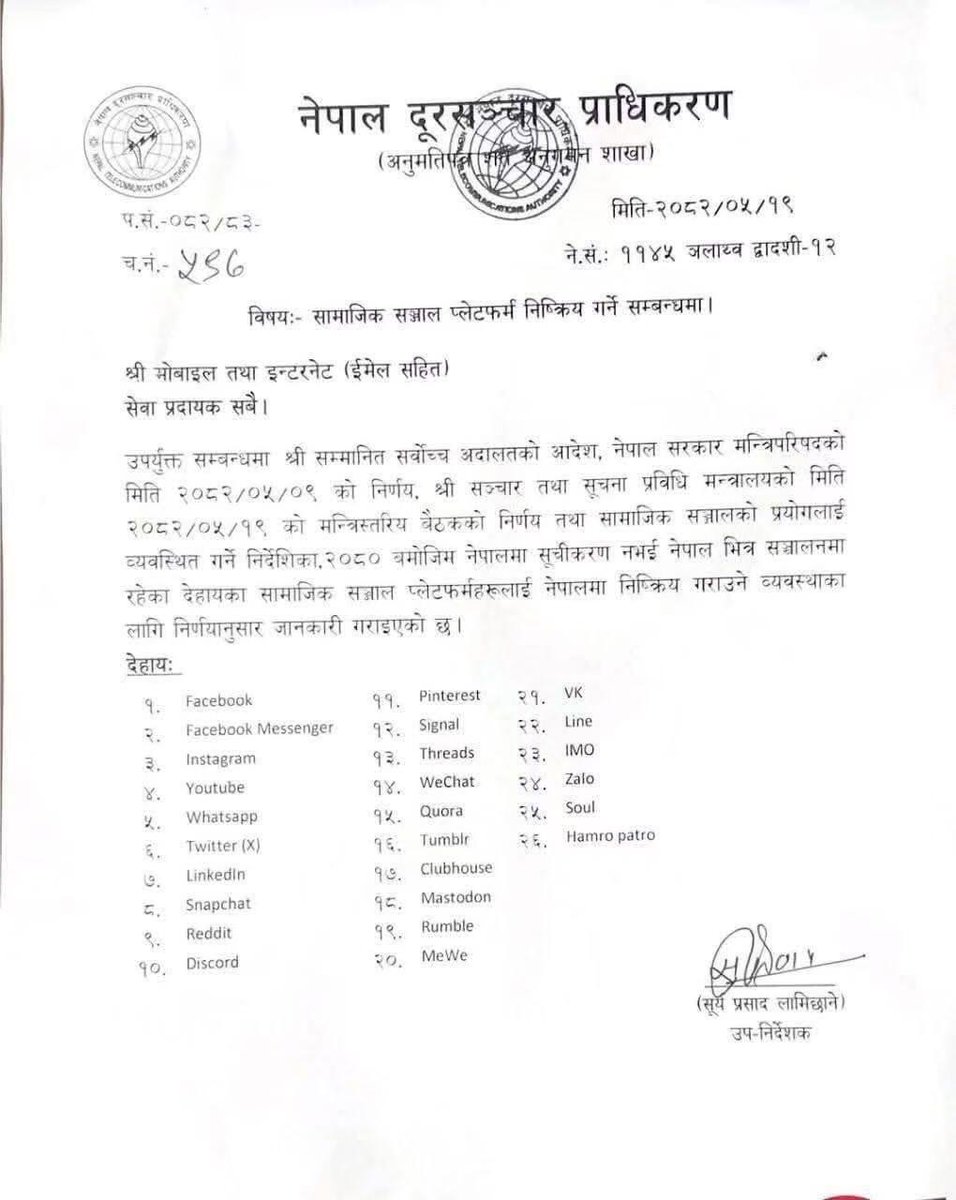 后续尼泊尔政府已经封禁 Facebook、Instagram、YouTube、Twitter、WhatsApp、Telegram 等在内的 26 个社交平台。有网友称,当天白天部分应用还能使用,但到晚上 WhatsApp 已彻底无法连接,Facebook 也受影响。有意思的是,微信仍然正常使用,据传是微信方面已与尼泊尔政府沟通。