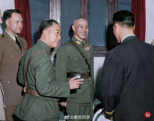 蒋介石巡视 “中美技术合作所”,所长戴笠及副所长梅乐斯陪同