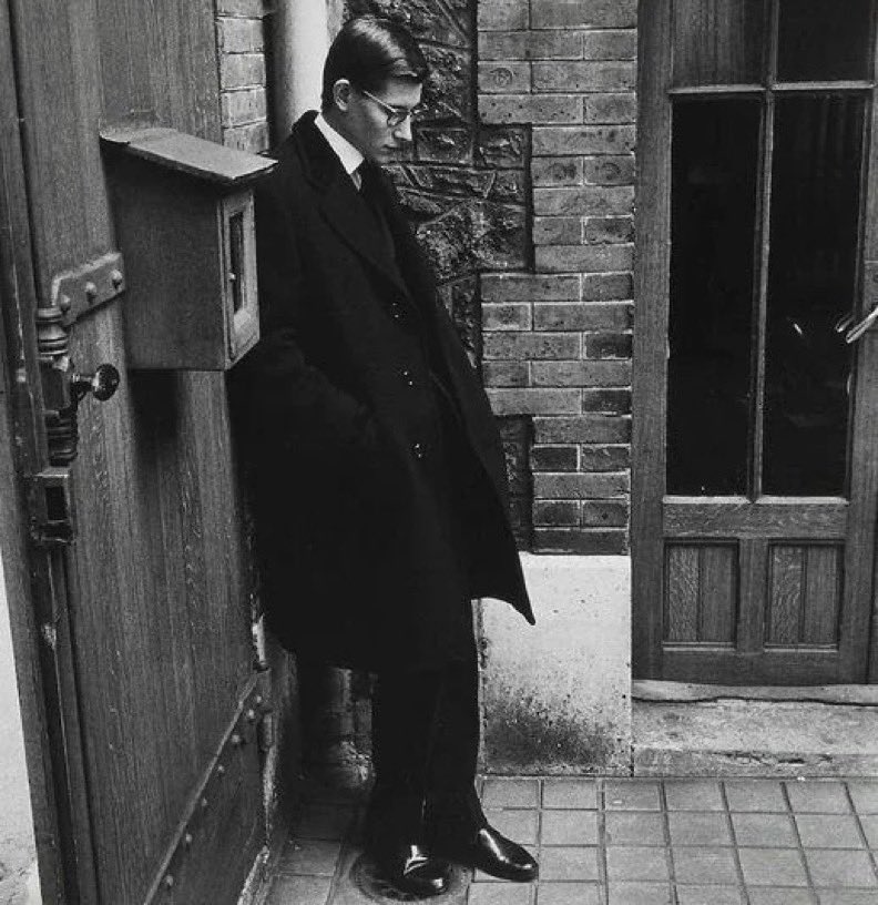 21-years old Yves Saint Laurent at Christian Dior's funeral, 1957.He has a very high aura at the age of 21!