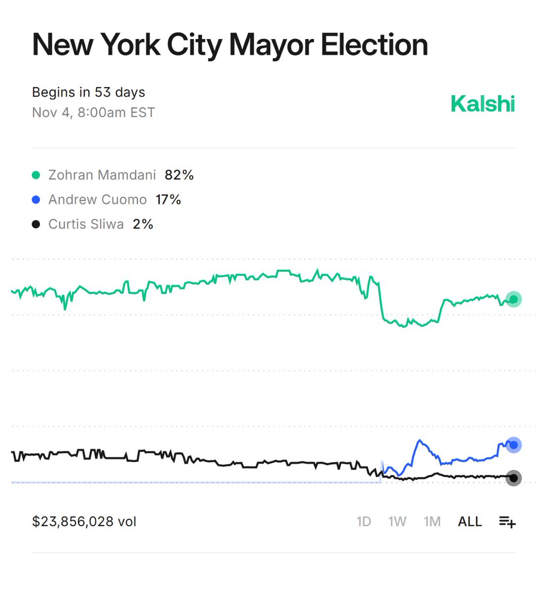 UNITED STATES: Chances of Zohran Mamdani winning the New York City mayoral election are currently at 82%, according to prediction market