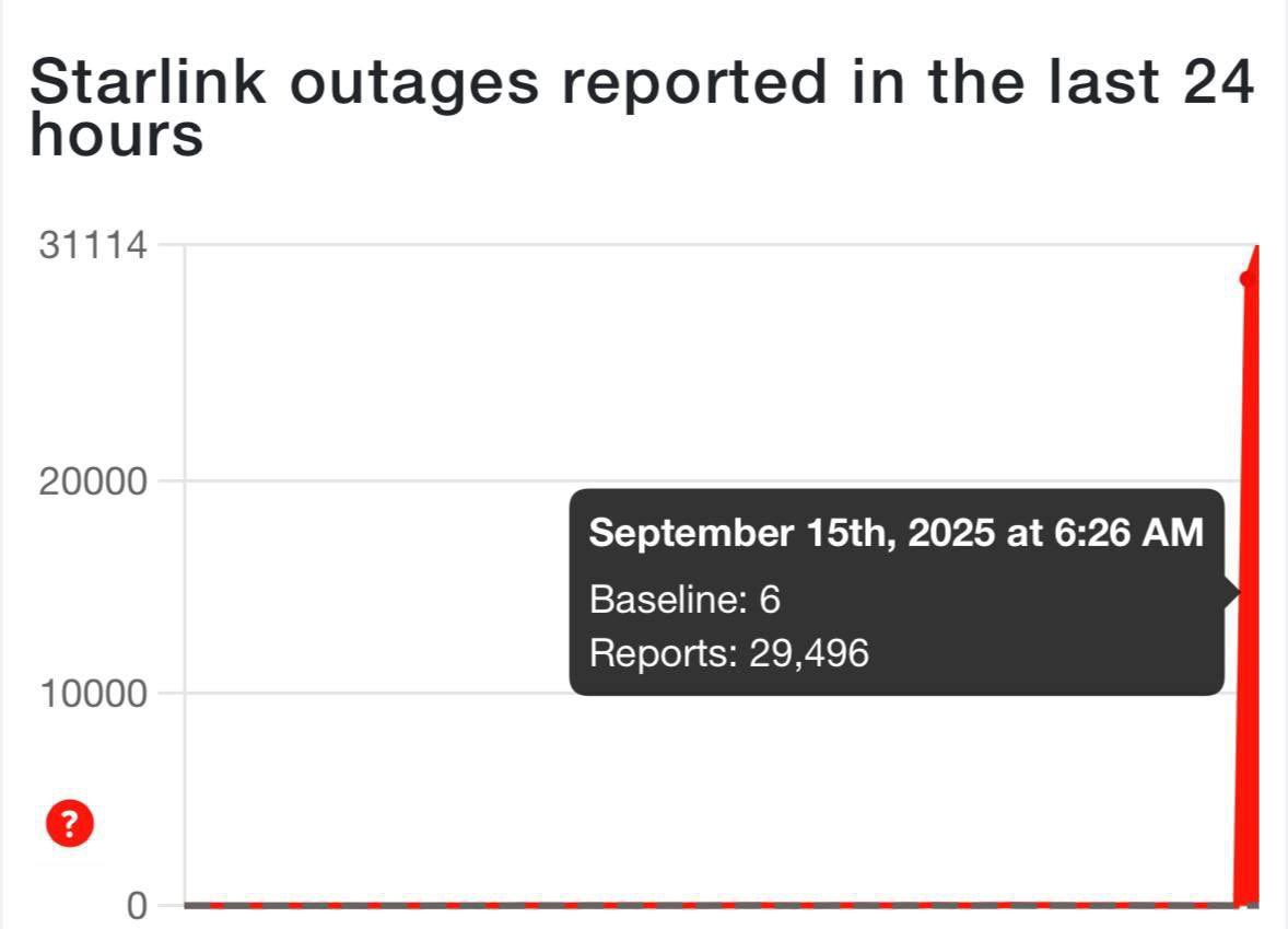 馬斯克的星鏈(Starlink)全球故障,烏克蘭前線無人機全部受到影響根據Downdetector的數據,用戶報告Starlink衛星互聯網出現大規模中斷。烏克蘭受影響最為嚴重:烏克蘭無人系統指揮官“馬迪亞爾”報告稱,Starlink在整個前線斷線。