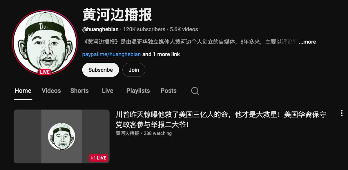 This “Huanghebian” has 54.6K followers on @X and 120 subscribers on YouTube.