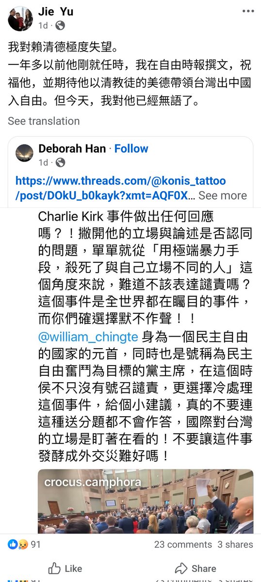 真是哭笑不得,余杰和矢板明夫等人竟然强烈要求台湾官方哀悼和纪念柯克。接下来是不是台湾还要降半旗才行...这些人是为了炒作流量还是精神有问题?